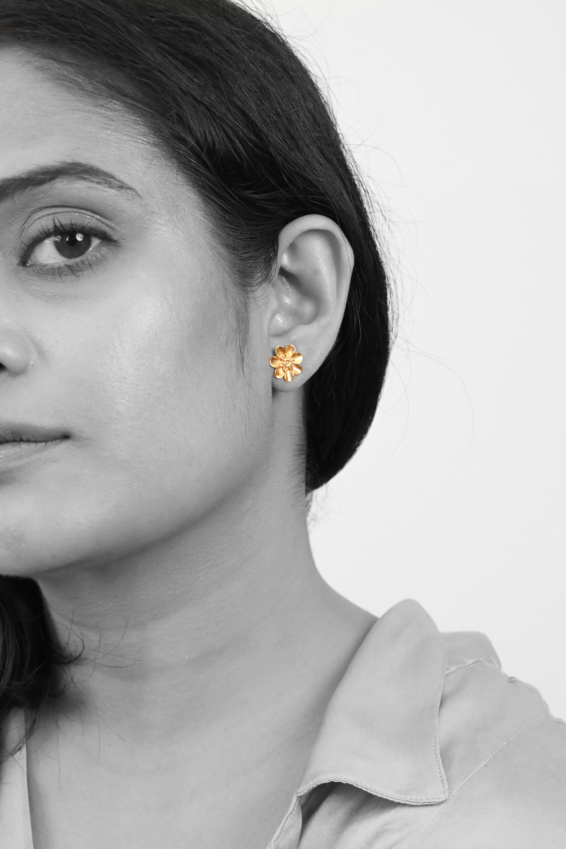 A quiet brilliance unfolds in the Lunara Bloom studs, where each petal is carved in harmony with celestial symmetry. Forged from 18k gold and weighing 2.65g, this pair radiates a refined floral geometry—gentle yet unwavering in its form.